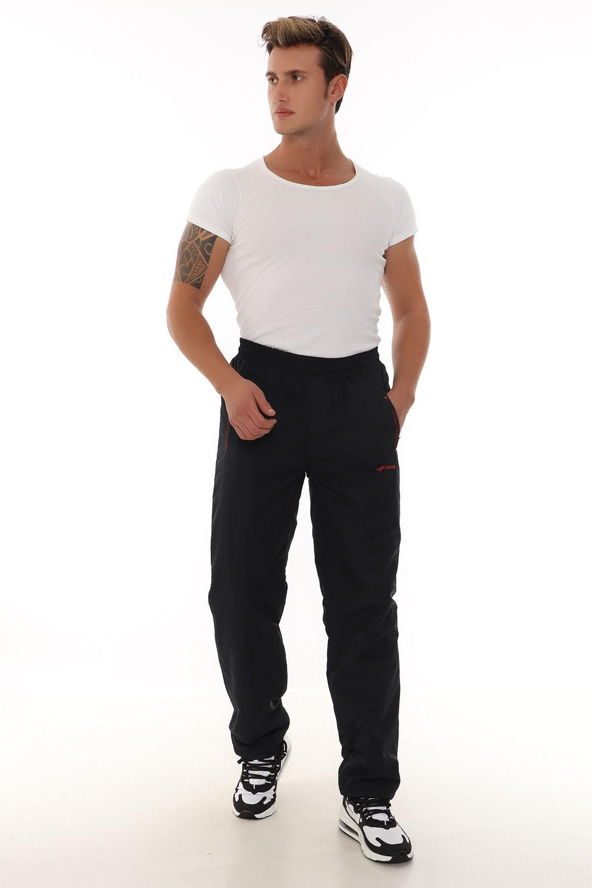Erkek Siyah Polarlı Paraşüt Eşofman Altı