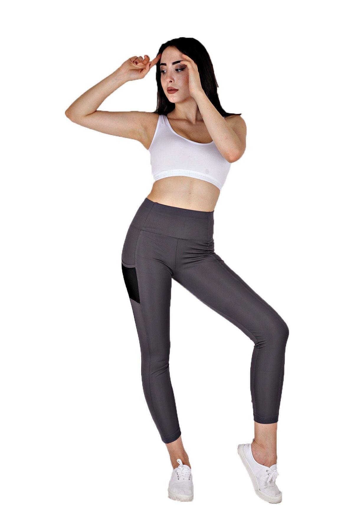 Kadın Füme Yüksek Bel Spor Tül Detaylı Spor Tayt