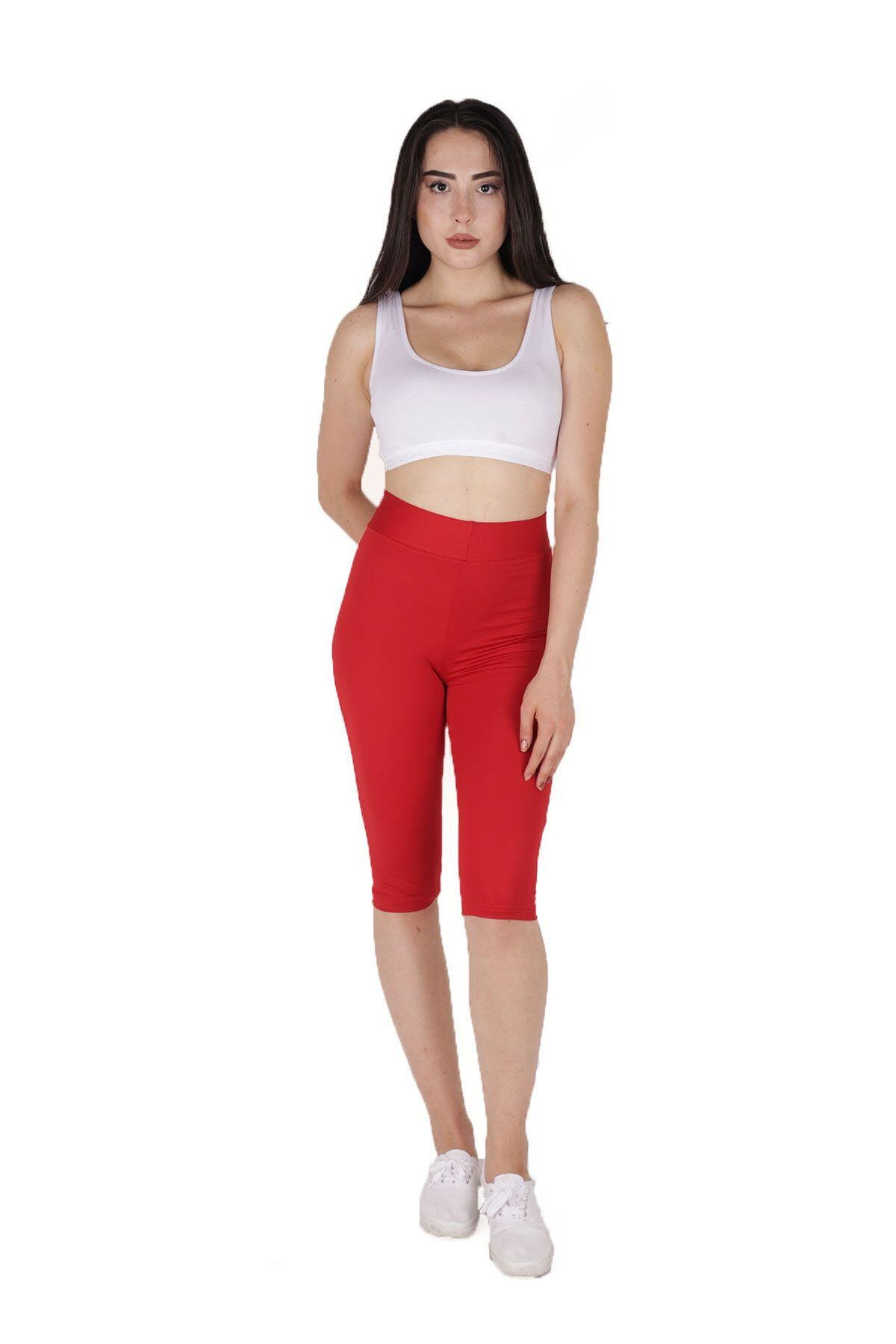 Kadın Kırmızı Yüksek Bel Sport Kısa Tayt